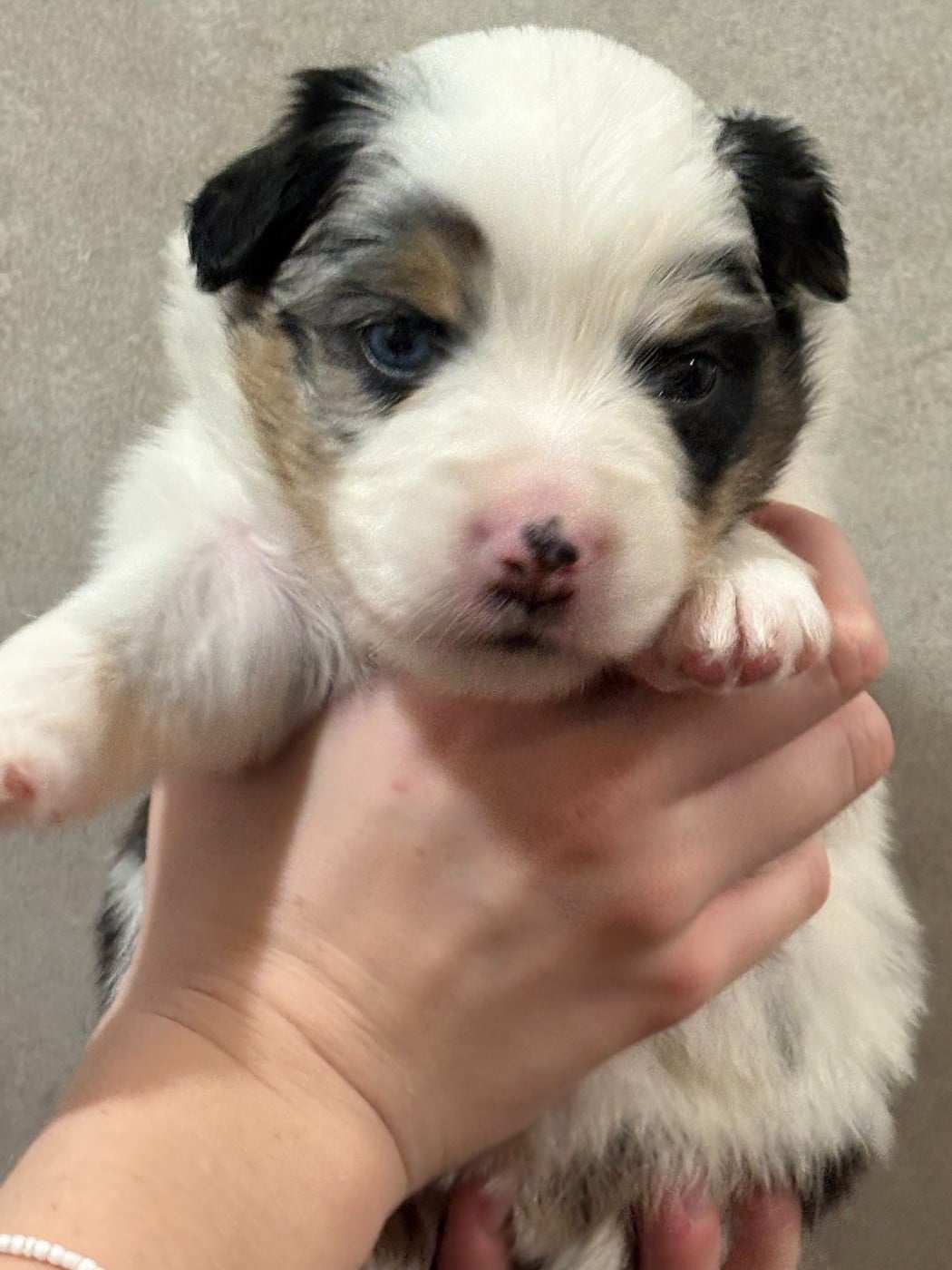 Bleu merle,collier rose Yeux bleus,NBT